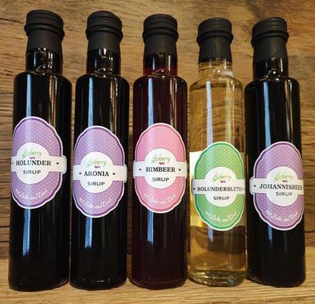 Holunder-Sirup, Aronia-Sirup, Himbeer-Sirup, Holunderblüten-Sirup, Johannisbeer-Sirup