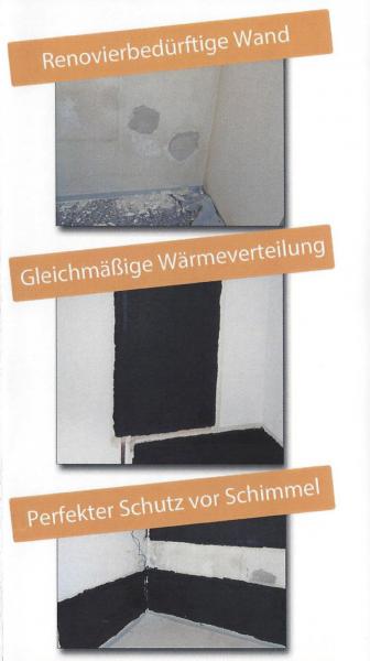 Wohlfühlwärme aus der Wand auf Knopfdruck. Ultralight und mit nur 0,1 mm ultraflach. Spielend leicht anbringbar. Die Heizung ist als Bodenheizung einsetzbar, zur Deckenmontage geeignet und wird normaler Weise am sinnvollsten in der Wand montiert. Sie erwärmt sich sehr schnell und gibt die Wärme gleichmäßig in den Raum ab. Damit wird sie auch die optimale Ergänzung zu bereits bestehenden oder alleinigen Heizsystemen.