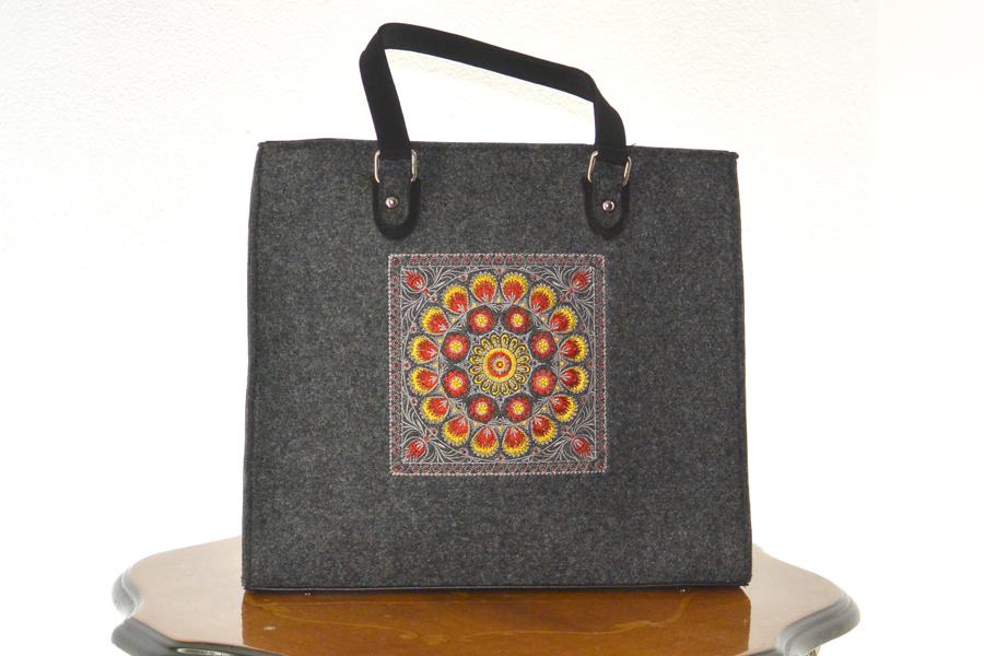 • Bei Taschen mit kurzem Henkel ist zusätzlich ein Riemen aus Filz zum Umhängen dabei.