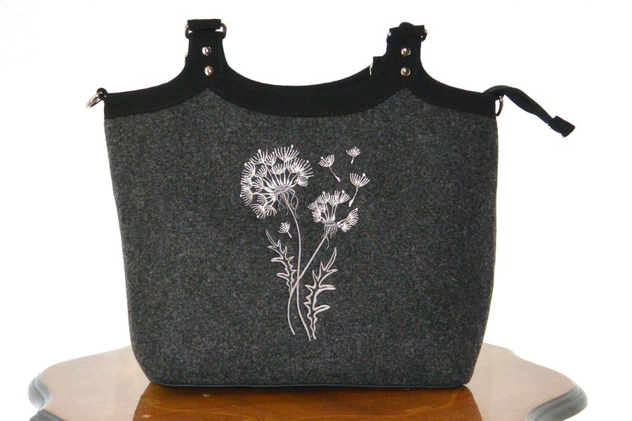 • Bei Taschen mit kurzem Henkel ist zusätzlich ein Riemen aus Filz zum Umhängen dabei.