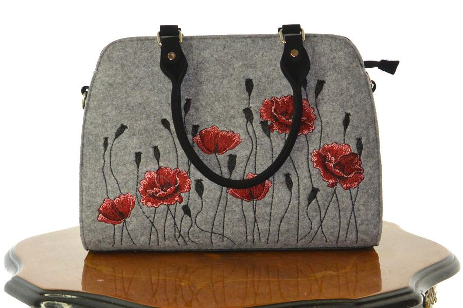 • Bei Taschen mit kurzem Henkel ist zusätzlich ein Riemen aus Filz zum Umhängen dabei.