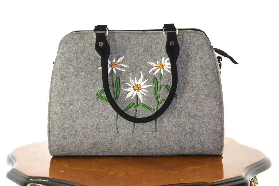 • Bei Taschen mit kurzem Henkel ist zusätzlich ein Riemen aus Filz zum Umhängen dabei.