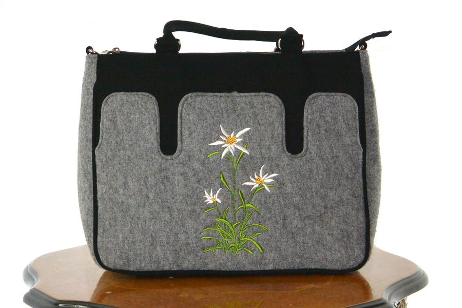 • Bei Taschen mit kurzem Henkel ist zusätzlich ein Riemen aus Filz zum Umhängen dabei.